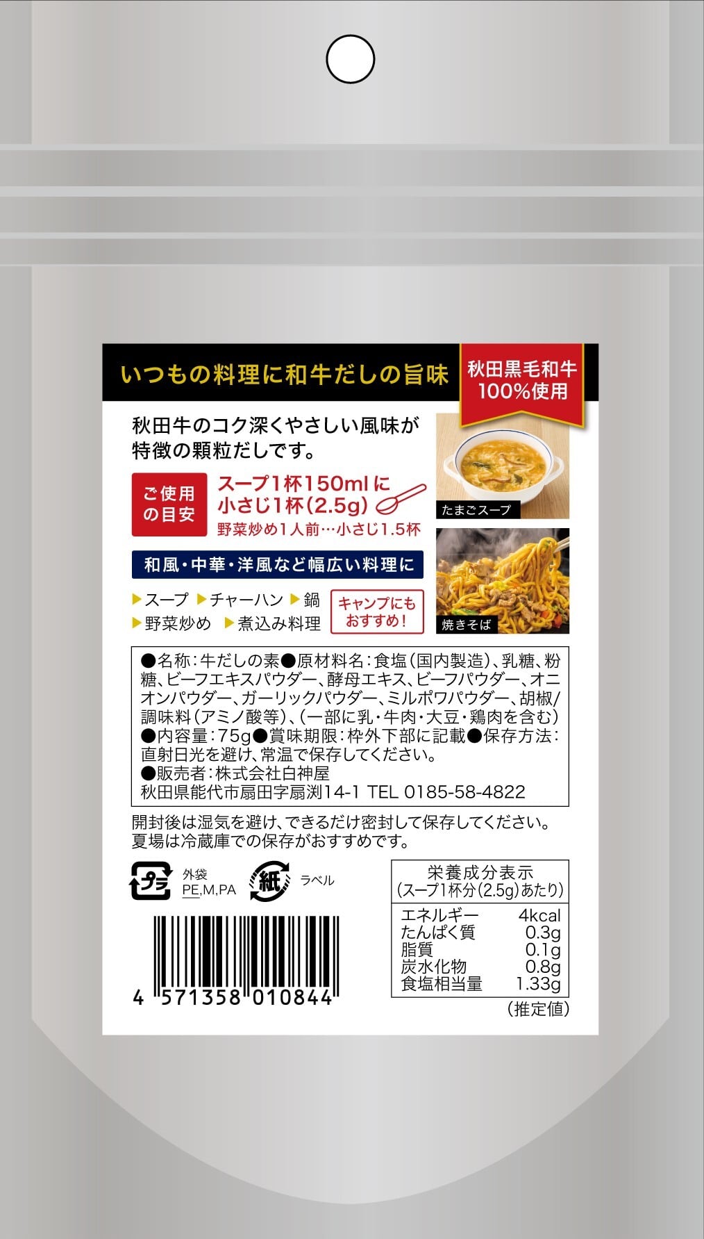 秋田黒毛和牛 牛だしは、秋田牛をベースにした贅沢な牛だしです。秋田牛の特徴である柔らかさと旨味を凝縮し、顆粒状にした使いやすい商品です。